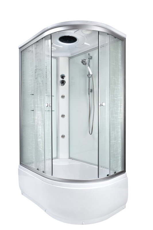 Дополнительные характеристики Закрытая кабина левосторонняяОграждение полностенноеМатериал передних стенок: стеклоТолщина передних стенок: 5 ммСтворок двери 2Крыша с вентиляционным отверстиемДвухрежимный переключатель режимовСмеситель регулировки температуры и напора воды с кер