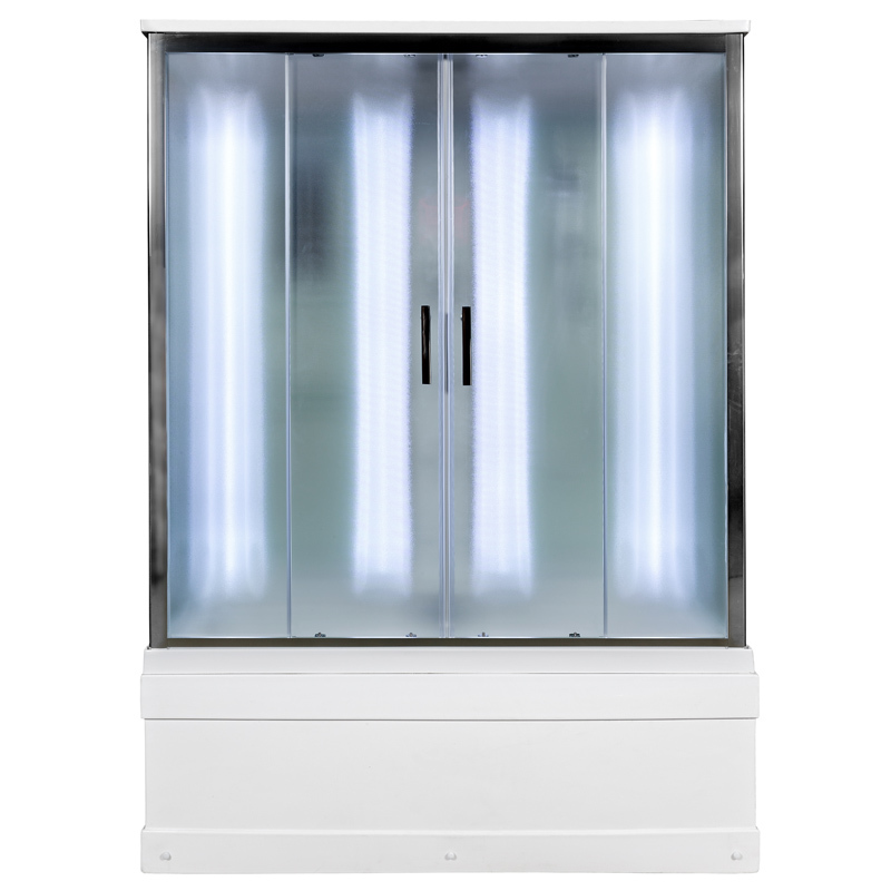 | Оснащение | зеркало, полки, душевая лейка, радио, вертикальная подсветка LED-подсветка, принудительная вентиляция |
