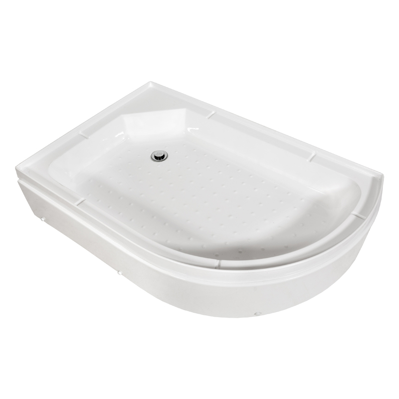 Форма поддона – ассиметричная, такой вариант обычно используется для ванных комнат с неправильной или сложной конфигурацией, при необходимости максимально использовать свободное пространство в маленьких санузлах. Чаще всего – это разновидность прямоугольного поддона с одним скругленным углом. При этом зауженная торцевая часть освобождает пространство, позволяет установить в ванной стиральную машину или раковину. Форма эргономичная, она кажется на первый взгляд нестандартной, однако относится к наиболее удобным и практичным.