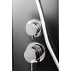Кроме смесителя с переключателями и форсунок в кабине есть еще и блок управления. Он расположен на задней стенке душевой кабины и имеет вид области (прямоугольной, квадратной, овальной и т.д.) с кнопками или чувствительной сенсорной поверхностью. Может быть оснащен дисплеем. Иногда эту панель называют и пультом. Устройство позволяет: