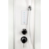 Кроме смесителя с переключателями и форсунок в кабине есть еще и блок управления. Он расположен на задней стенке душевой кабины и имеет вид области (прямоугольной, квадратной, овальной и т.д.) с кнопками или чувствительной сенсорной поверхностью. Может быть оснащен дисплеем. Иногда эту панель называют и пультом. Устройство позволяет: