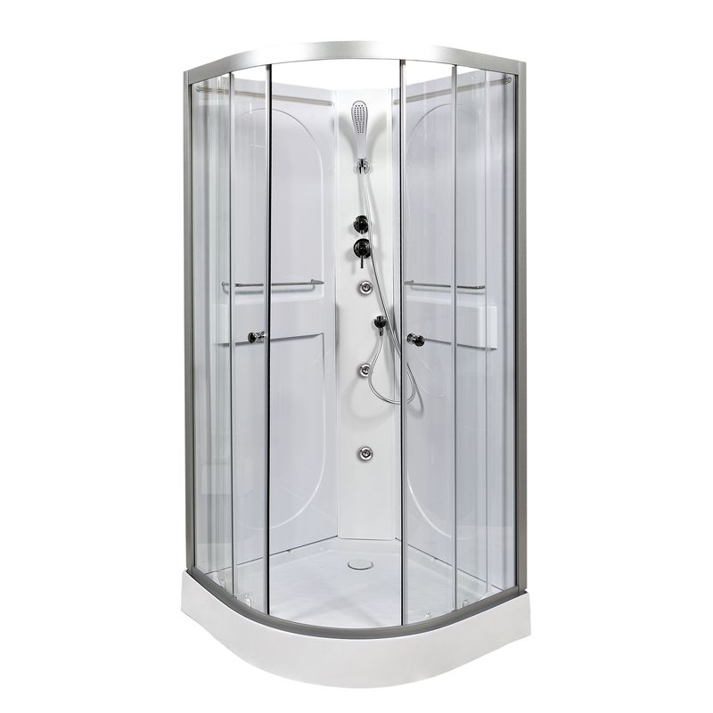 Форма поддона – четверть круга, такой вариант подходит для небольших и очень маленьких ванных. Душевой бокс монтируется в углу, максимально используя пространство. При этом кабинка остается удобной в эксплуатации, имеет достаточно места для установки душевого комплекта, небольшого раскладного сиденья при необходимости. Сегодня производители предлагают поддоны с формой четверть круга и для больших ванных. Такое решение повышает коэффициенты использования полезного пространства, позволяют правильно его организовать и сделать более практичным.
