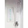 Кроме смесителя с переключателями и форсунок в кабине есть еще и блок управления. Он расположен на задней стенке душевой кабины и имеет вид области (прямоугольной, квадратной, овальной и т.д.) с кнопками или чувствительной сенсорной поверхностью. Может быть оснащен дисплеем. Иногда эту панель называют и пультом. Устройство позволяет: