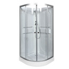 Форма поддона – четверть круга, такой вариант подходит для небольших и очень маленьких ванных. Душевой бокс монтируется в углу, максимально используя пространство. При этом кабинка остается удобной в эксплуатации, имеет достаточно места для установки душевого комплекта, небольшого раскладного сиденья при необходимости. Сегодня производители предлагают поддоны с формой четверть круга и для больших ванных. Такое решение повышает коэффициенты использования полезного пространства, позволяют правильно его организовать и сделать более практичным.