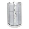 | Дополнительные характеристики | Регулируемая высота ножек. Вертикальный гидромассаж есть. Кол-во гидромассажных форсунок 3. Сверхпрочное закаленное стекло толщиной 4 мм с антикальциевой обработкой. Хромированные ручки. Усиленный акриловый поддон с дренажными отводами. Нескользящее покры |