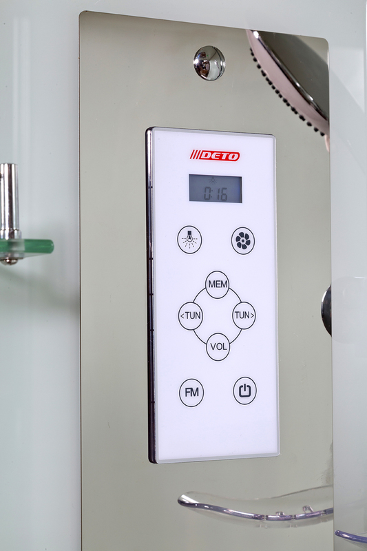 Душевая кабина Deto Z120 KERAVA с электрикой имеет удобное электронное управление. Габариты данной модели составляют ШхВхД (см): 90*220*120. Поддон имеет форму прямоугольная, высоту 15 см, тип - низкий поддон. Материал изготовления поддона - акрил. Стекло используется прозрачное. Кабина поставляется с крышей. Из особенностей данной модели стоит отметить, что у нее опция, есть гидромассаж. Наличие тропического душа: да.