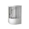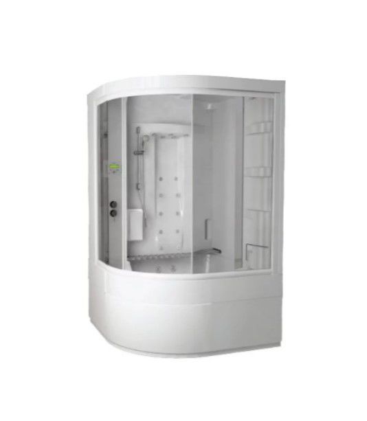 Дополнительные характеристики Ограждение полностенное, стеклянные передние стенки, вертикальный гидромассаж, гидромассаж ног, гидромассаж спины, термостатический смеситель.