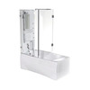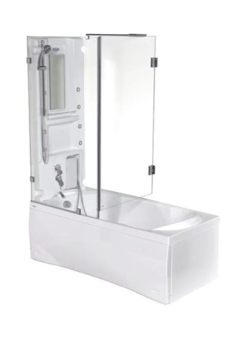 | Дополнительные характеристики | Ограждение трехстенное, стеклянные передние стенки, толщина передних стенок 6 мм, одна створка дверей, вертикальный гидромассаж, гидромассаж ног, классический смеситель. Опционально: гидро- и аэромассаж в ванне с электромеханическим управлением, подголовн |