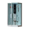 Кроме смесителя с переключателями и форсунок в кабине есть еще и блок управления. Он расположен на задней стенке душевой кабины и имеет вид области (прямоугольной, квадратной, овальной и т.д.) с кнопками или чувствительной сенсорной поверхностью. Может быть оснащен дисплеем. Иногда эту панель называют и пультом. Устройство позволяет: