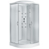 Форма поддона – четверть круга, такой вариант подходит для небольших и очень маленьких ванных. Душевой бокс монтируется в углу, максимально используя пространство. При этом кабинка остается удобной в эксплуатации, имеет достаточно места для установки душевого комплекта, небольшого раскладного сиденья при необходимости. Сегодня производители предлагают поддоны с формой четверть круга и для больших ванных. Такое решение повышает коэффициенты использования полезного пространства, позволяют правильно его организовать и сделать более практичным.
