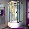 Дополнительные характеристики Усиленный акриловый душевой глубокий поддон с каркасом и фартуком; плоская крыша ABS; центральная пластиковая стойка со смесителем и тремя гидромассажными форсунками; черные/белые закаленные задние стекла; тонированные/матовые передние стекла; ручной душ