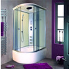 Дополнительные характеристики Усиленный акриловый душевой глубокий поддон с каркасом и фартуком; плоская крыша ABS; центральная пластиковая стойка со смесителем и тремя гидромассажными форунками; черные/белые закаленные задние стекла; тонированные/матовые передние стекла; стеклянная