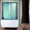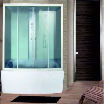 Дополнительные характеристики Акриловый душевой глубокий поддон с каркасом и фартуком; плоская крыша ABS; центральная пластиковая стойка со смесителем и тремя гидромассажными форсунками; черные/белые закаленные задние стекла; тонированные/матовые передние стекла; алюминиевые дуги; ст