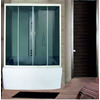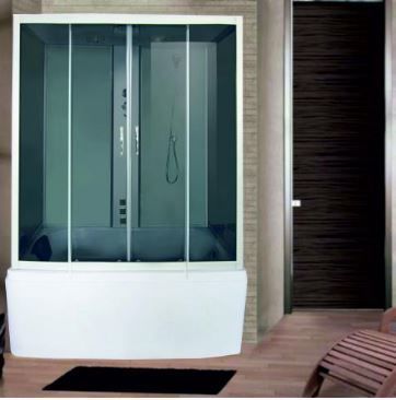 Дополнительные характеристики Акриловый душевой глубокий поддон с каркасом и фартуком; плоская крыша ABS; центральная пластиковая стойка со смесителем и тремя гидромассажными форсунками; черные/белые закаленные задние стекла; тонированные/матовые передние стекла; алюминиевые дуги; ст