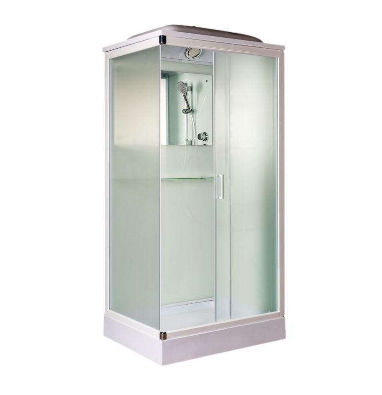 | Дополнительные характеристики | задние стекла: закаленное крашенное стекло (белое, 5мм), передние стекла: закаленное рифленое стекло (5 мм), профиль белый, ручки белые, смеситель с керамическим картриджем, усиленный гладкий шланг лейки, вентиляционная решетка 2 шт, двойные металлически |