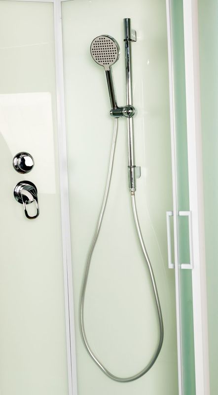 Дополнительные характеристики задние стекла: закаленное крашенное стекло (белое, 5мм), передние стекла: закаленное рифленое стекло (5 мм), профиль белый, ручки белые, смеситель с керамическим картриджем, усиленный гладкий шланг лейки, вентиляционная решетка 2 шт, двойные металлически