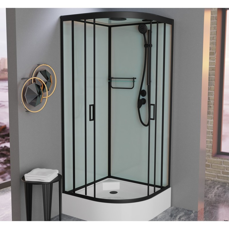 Форма поддона – четверть круга, такой вариант подходит для небольших и очень маленьких ванных. Душевой бокс монтируется в углу, максимально используя пространство. При этом кабинка остается удобной в эксплуатации, имеет достаточно места для установки душевого комплекта, небольшого раскладного сиденья при необходимости. Сегодня производители предлагают поддоны с формой четверть круга и для больших ванных. Такое решение повышает коэффициенты использования полезного пространства, позволяют правильно его организовать и сделать более практичным.