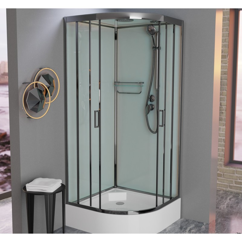 Форма поддона – четверть круга, такой вариант подходит для небольших и очень маленьких ванных. Душевой бокс монтируется в углу, максимально используя пространство. При этом кабинка остается удобной в эксплуатации, имеет достаточно места для установки душевого комплекта, небольшого раскладного сиденья при необходимости. Сегодня производители предлагают поддоны с формой четверть круга и для больших ванных. Такое решение повышает коэффициенты использования полезного пространства, позволяют правильно его организовать и сделать более практичным.