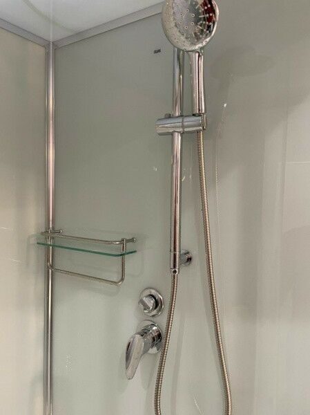 Раздвижные двери — это универсальная конструкция, занимающая минимум места в душевой кабине. Они удобны и функциональны, а также они предотвращают попадание воды за пределы пространства для мытья. Такая форма дверей может успешно герметизировать бокс, так что ни одна капля не окажется на полу. К тому же данная конфигурация не требует много места, что позволяет сэкономить пространство в ванной. Раздвижные двери не помешают уборке, ведь они не загораживают доступ к стенам и пространству душевой — в этом их неоспоримое преимуество.