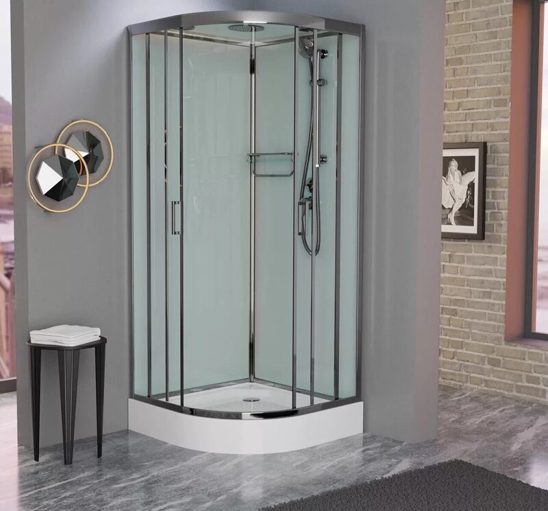 Форма поддона – четверть круга, такой вариант подходит для небольших и очень маленьких ванных. Душевой бокс монтируется в углу, максимально используя пространство. При этом кабинка остается удобной в эксплуатации, имеет достаточно места для установки душевого комплекта, небольшого раскладного сиденья при необходимости. Сегодня производители предлагают поддоны с формой четверть круга и для больших ванных. Такое решение повышает коэффициенты использования полезного пространства, позволяют правильно его организовать и сделать более практичным.