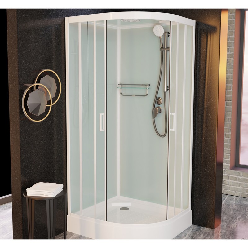 Форма поддона – четверть круга, такой вариант подходит для небольших и очень маленьких ванных. Душевой бокс монтируется в углу, максимально используя пространство. При этом кабинка остается удобной в эксплуатации, имеет достаточно места для установки душевого комплекта, небольшого раскладного сиденья при необходимости. Сегодня производители предлагают поддоны с формой четверть круга и для больших ванных. Такое решение повышает коэффициенты использования полезного пространства, позволяют правильно его организовать и сделать более практичным.