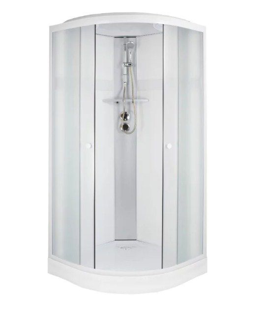 Небольшая кабинка, очень симпатичная, светлая, хорошо выглядит в современной ванной. Нет всяких дополнительных опций вроде турецкой бани и финской сауны, но мне кажется, что они от душевой кабины и не нужны. Очень порадовала цена — чуть больше десяти тысяч. Поддон низкий, всего 15 см, высота ножек регулируется. Понравилось, что раздвижные двери не прозрачные, а матовые. По работе магазина тоже вопросов нет, всё отлично: заказала, тут же перезвонили, через три дня кабина была уже у меня и собрана.