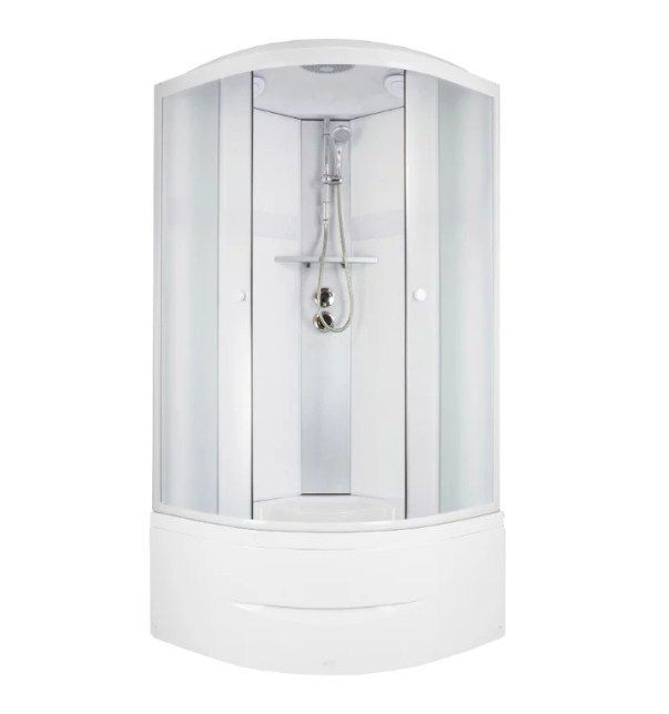 Очень красивая! Мне понравилась в первую очередь за дизайн. Вроде обычной формы, четверть круга и есть четверть круга, но она как-то смотрится гораздо легче и тоньше, изящней, чем остальные похожие. Есть тропический и обычный душ, всё на удобной высоте, все сделано из качественных материалов. Приятно пользоваться. Протечек не обнаружила ни разу.