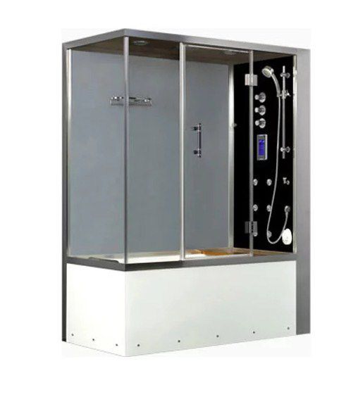 | Дополнительные характеристики | комбинированная закрытая кабина правосторонняя, вертикальный гидромассаж, горизонтальный гидромассаж, аэромассаж, ароматерапия, озонирование, радио, верхняя подсветка, подсветка панели управления, опционально: термостатический смеситель |