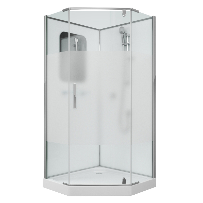 Форма поддона – многогранная, предназначенная для угловой установки. Конструкция используется при необходимости правильной организации пространства, использования площади небольшого санузла или в ванным с нестандартной, сложной конфигурацией. Визуально такой поддон кажется большим, но на самом деле он занимает не так много места. Особая многогранная форма отличается хорошей эргономикой, принимать душ будет удобно даже людям с крупной комплекцией. Минимальная длина поддона может составлять 80 см, максимальная – 120 см и даже больше, выбор зависит от площади ванной комнаты.