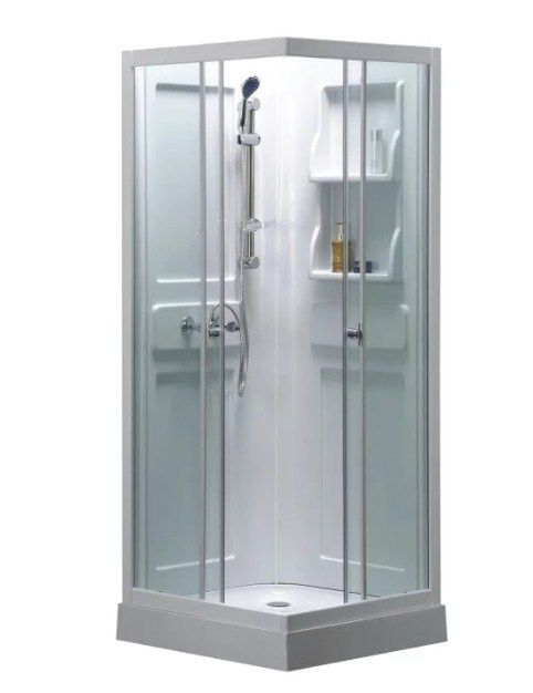 Мы взяли данную модель, поскольку по размерам это максимально, что поместится в тесный санузел. Форма квадратная, длина и ширина по 90 см, пространства внутри при таком варианте больше, чем в четверти круга. Высота ограждения 205 см, открытая, без крыши, поэтому комфортно мыться высоким людям, не сутулясь, можно вытягивать руки наверх, намыливая их. Такой формат душевой кабины для меня самый удобный. Еще и поддон низкий, не нужно перешагивать высокие барьеры. Хорошо, что внутри сразу встроили полки для принадлежностей, а то у нас в старой кабине такого не было, приходилось постоянно ставить шампуни на пол, потом открывать двери, тянуться за ними, весь пол потом в каплях воды. Так что мое мнение – это простая, но вместительная и удобная модель для комфортного купания.