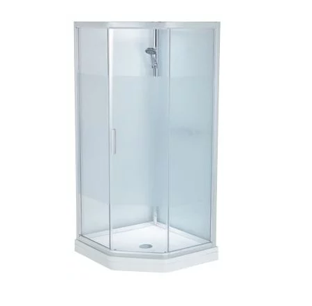 Форма поддона – многогранная, предназначенная для угловой установки. Конструкция используется при необходимости правильной организации пространства, использования площади небольшого санузла или в ванным с нестандартной, сложной конфигурацией. Визуально такой поддон кажется большим, но на самом деле он занимает не так много места. Особая многогранная форма отличается хорошей эргономикой, принимать душ будет удобно даже людям с крупной комплекцией. Минимальная длина поддона может составлять 80 см, максимальная – 120 см и даже больше, выбор зависит от площади ванной комнаты.