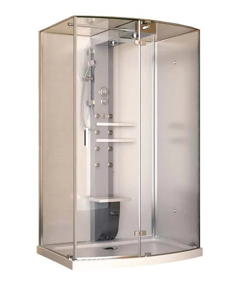 | Дополнительные характеристики | Ограждение: двухстенное, количество створок двери: 1, правосторонняя установка, форсунок для вертикального массажа 8, вертикальный гидромассаж, гидромассаж спины, гидрофобное покрытие, опционально: сидение, колпак, настенные стекла |