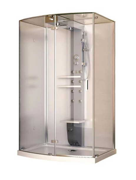 | Оснащение | Поддон, полки, душевая лейка, смеситель термостатический. |