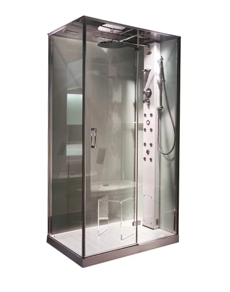 | Дополнительные характеристики | Ограждение: полностенное, количество створок двери: 1, цвет отделки: хром, установка правостороняя, гидрофобное покрытие, массаж - вертикальный гидромассаж, гидромассаж спины, 8 форсунок для вертикального массажа, верхний душ с эффектом дождя, каскадный д |