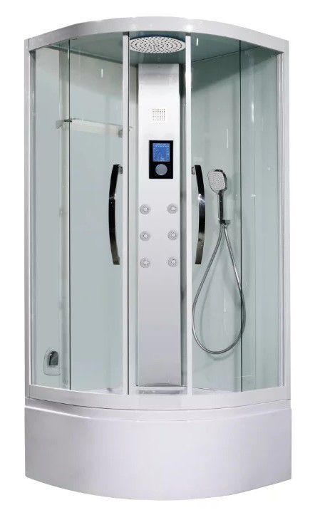 Дополнительные характеристики Ограждение полностенное, стекло Ultra white - 8 мм, количество створок двери - 2, вертикальный гидромассаж, гидромассаж спины, количество форсунок для вертикального массажа - 6, озонирование, вентиляция, Fm — радио, подключение к CD/DVD, телефон (громкая