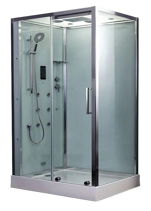 | Дополнительные характеристики | Закрытая кабина левосторонняя, ограждение полностенное, стекло Ultra white - 8 мм, количество створок двери - 1, вертикальный гидромассаж, гидромассаж спины, озонирование, вентиляция, радио, подключение к CD, дисплей, смеситель классический, верхняя подсв |
