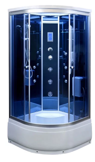 Душевая кабина Leader D-100MS имеет удобное электронное управление. Габариты данной модели составляют ШхВхД (см): 100x220x100 см. Поддон имеет форму четверть круга, высоту нет информации см, тип - высокий поддон. Материал изготовления поддона - акрил. Стекло используется тонированное (полупрозрачное). Кабина поставляется с крышей. Из особенностей данной модели стоит отметить, что у нее есть сиденье, есть гидромассаж. Наличие тропического душа: да.