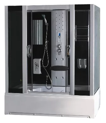 | Дополнительные характеристики | Закрытая комбинированная кабина, Полностенное ограждение, Материал передних стенок: стекло, 2 створки, Вертикальный гидромассаж, Гидромассаж ног, Гидромассаж спины, Вентиляция, Радио, Дисплей, Классический смеситель, Верхняя подсветка, Декоративная подсве |