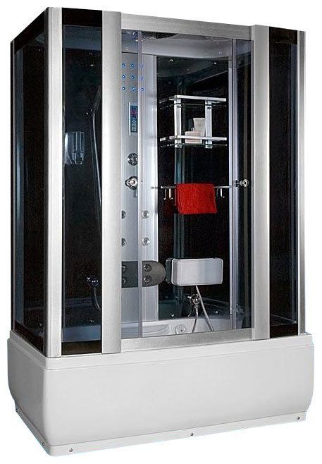 | Оснащение | Поддон, полки, душевая лейка, смеситель, сидение, подголовник, дозатор шампуней. |