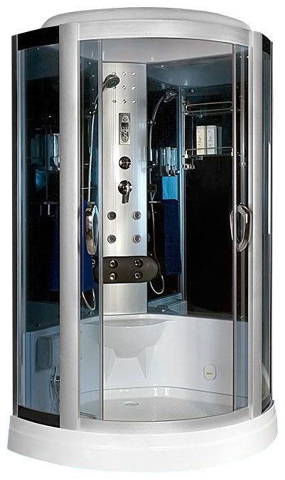 Красивейшая кабина с тонированными стеклами, очень удобная, просторная внутри. Понравилась продуманная организация пространства – расположение смесителей, наличие сиденья. Да даже зеркало с дозаторами для шампуня есть! И, кстати, вентиляция достаточно мощная, чтобы зеркало не было бесполезным. Много вариантов гидромассажа – ножной, для спины, вертикальный. Есть даже громкая связь. 5 из 5!