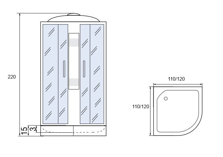 | Оснащение | ручной душ, полочка, смеситель, сифон с гидрозатвором, вентиляция |