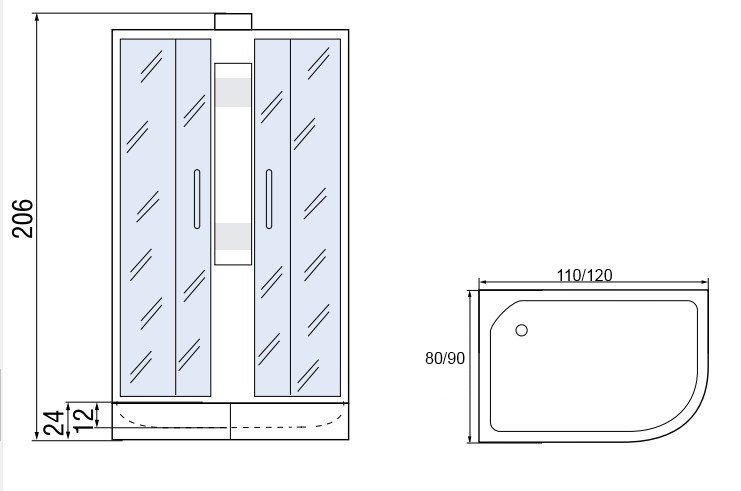 МОНОМАХ Б/К 120/90/24 МЗ L Душевая кабина с поддоном