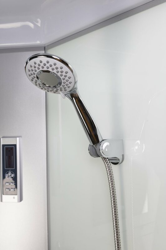 Отличная душевая кабина прямоугольной формы. Привлекли раздвижные двери с матовыми стеклами, стенки из закаленного стекла, два вида душа, подсветка и прочее. Поддон из акрила средней величины – идеальное компромиссное решение. В нем предусмотрено противоскользящее покрытие, захочешь упасть – не упадешь. Управление функциями – электронное. Высота конструкции более двух метров – здорово! Внутри удобно, просторно, есть зеркало, полочка для моющих и прочих средств. Безусловно, адекватный заменитель надоевшей ванне. Изготовитель этого чуда сантехники неудивителен – вездесущий Китай.