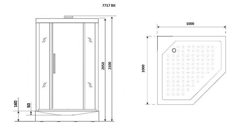 | Дополнительные характеристики | Цвет - серебро. Передние стекла- 5мм; Дверь раздвижная - 6 мм. |