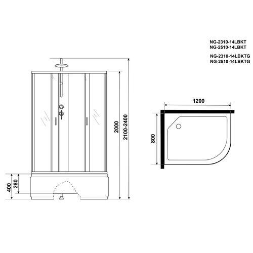 Душ.каб. NG-2510-14LBKT (1200х800х2100) высокий поддон(40см) стекло ТОНИРОВАННОЕ 4 места