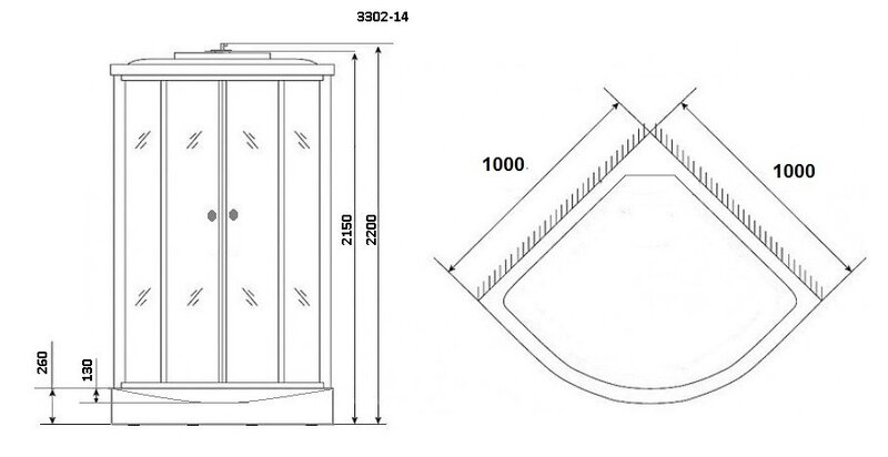 | Оснащение | ЗАДНИЕ СТЕНКИ: СТЕКЛО БЕЛОЕПЕРЕДНЕЕ СТЕКЛО: МАТОВОЕПРОФИЛЬ: МАТОВЫЙ ПОДДОН: СРЕДНИЙ 26см |