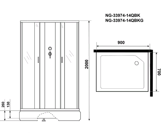 Душ.каб. NG-33974-14QBKG (900х700х2150) средний поддон (26см) стекло МАТОВОЕ 4 места