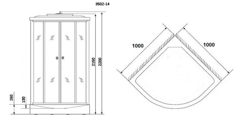 Душ.каб. NG-3502-14G (1000х1000х2150) средний поддон(26см) стекло ТОНИРОВАННОЕ 4 места Т