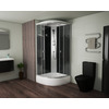 Форма поддона – четверть круга, такой вариант подходит для небольших и очень маленьких ванных. Душевой бокс монтируется в углу, максимально используя пространство. При этом кабинка остается удобной в эксплуатации, имеет достаточно места для установки душевого комплекта, небольшого раскладного сиденья при необходимости. Сегодня производители предлагают поддоны с формой четверть круга и для больших ванных. Такое решение повышает коэффициенты использования полезного пространства, позволяют правильно его организовать и сделать более практичным.