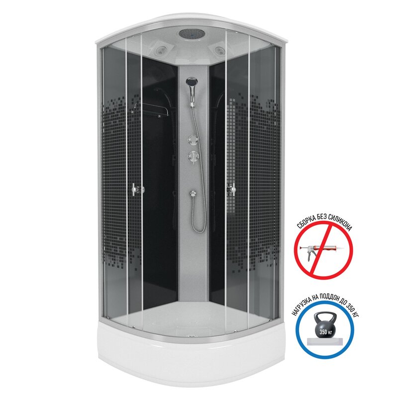 Душ.каб. NG-3504-14BLACK (900х900х2150) средний поддон(26см) стекло МОЗАИКА 4 места